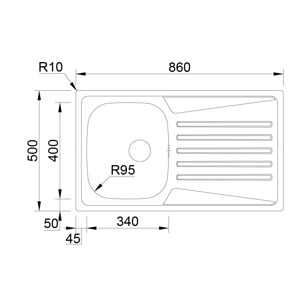Medida externa: 860x500mm