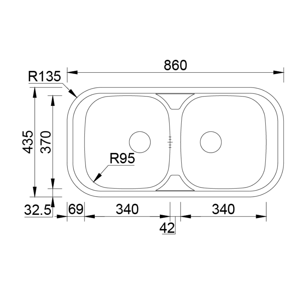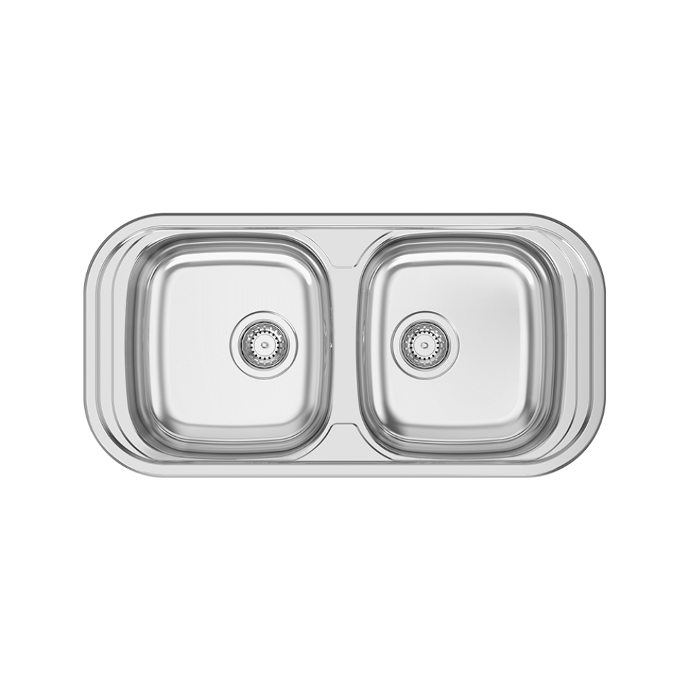 Lava-louça monoestampado de 2 cubas raio 95mm, para aplicação de encastrar.