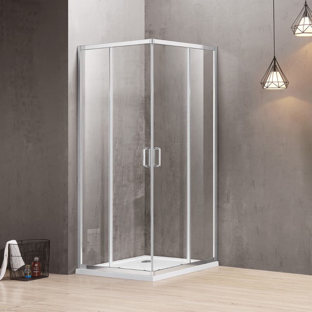 Resguardo de duche em vidro temperado de 6 mm, altura 2000 mm, com perfis em alumínio cromado e tratamento anti-calcário.