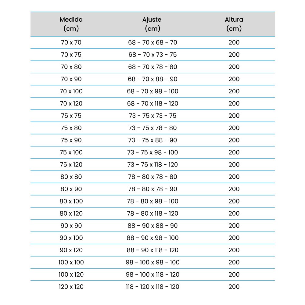 70×70 ,70×75 ,70×80 ,70×90 ,70×100 ,70×120 ,75×75 ,75×80 ,75×90 ,75×100 ,75×120 ,80×80 ,80×90 ,80×100 ,80×120 ,90×90 ,90×100 ,90×120 ,100×100 ,100×120 ,120×120 |
