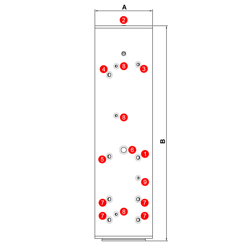 Apoio Elétrico: equipado com ligação de 1 1/2″F para posterior colocação de resistência elétrica