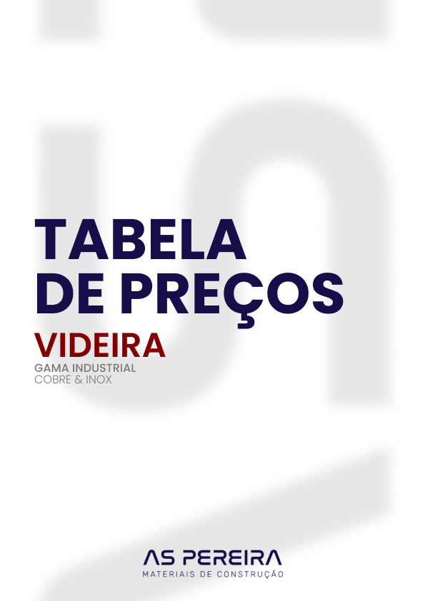 Tabela de Preços PP-RCT/PP-R COPRAX 2025 Tabela de Preços PPR Alfatherm 2022 Catálogo Coroas STARRETT Tabela de Preços Acessórios PVC Saneamento 2020 Tabela de Preços Acessórios Esgoto PVC 2022 Tabela de Preços Videira – Gama Doméstica Tabela de Preços Videira – Gama Industrial Tabela de Preços ATUSA 2025 Tabela de Preços VALSIR 2026 Tabela de Preços Bombas de furo 2023 Tabela de Preços SFA 2026 Catálogo SFA 2025 Tabela de Preços Esquentadores a Gás BOSCH 2025 Tabela de Preços Aquecimento BOSCH 2025 Tabela de Preços Bombas de calor AQS BOSCH 2023 Tabelas de Preços BOSCH Gama Solar 2025 Tabela de Preços Ar Condicionado BOSCH 2022 Catálogo Aerotermia EKALLOR Catálogo Geral OLI 2026 Tabela de Preços PRESTO 2025 Tabela de Preços Perfis e rodapés pavimento vinílico Tabela de Preços Tintas SOTINCO 2026 Tabela de Preços Tampas e grelhas CAPA DRAIN 2025 PROMO VIRAX 2025 Catálogo VIRAX 2025 Folheto ROTHENBERGER 2026 (Janeiro – Junho) Catálogo Luvas Profissionais ATG Catálogo Calçado Proteção BASE